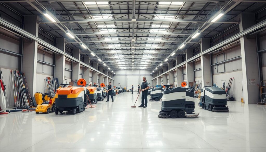 Chúng tôi dùng máy hút bụi, máy lau sàn, và máy làm sạch kính. Các thiết bị này được thiết kế cho vệ sinh cao tầng. Nó giúp quá trình vệ sinh dễ dàng và hiệu quả.